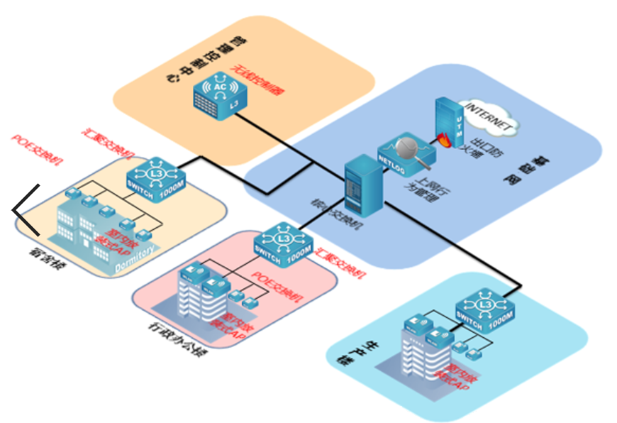 接入层采用千兆接入、千兆上行,实现千兆到桌面,同时交换机支持POE供电,可以为无线AP给予远程供电。